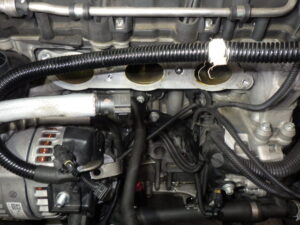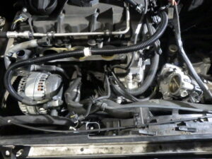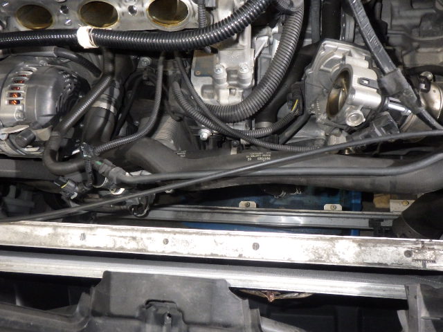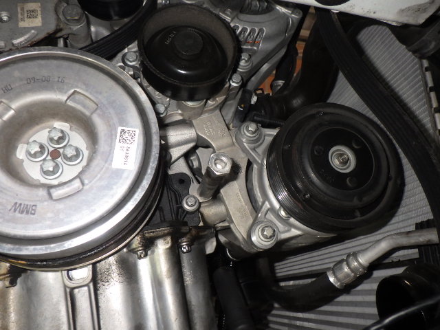 ファンベルトを外して、クーラーコンプレッサーを外して、下によけておきます。